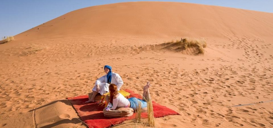 This 5 Days Desert Tour Marrakech To Merzouga to explore the South of Morocco the Sahara DesertĀ of Merzouga erg chebbi dunesĀ and enjoy the stops for panoramic views of the High atlas mountains as Berber villagesĀ such as Ait Ben Haddou Kasbah , Taourirt & Tamnougalte. During this tour from Marrakech , you will have the chance to trek camels and spend An Overnight intoĀ theDesertĀ camp in Erg-Chebbi golden dunes.